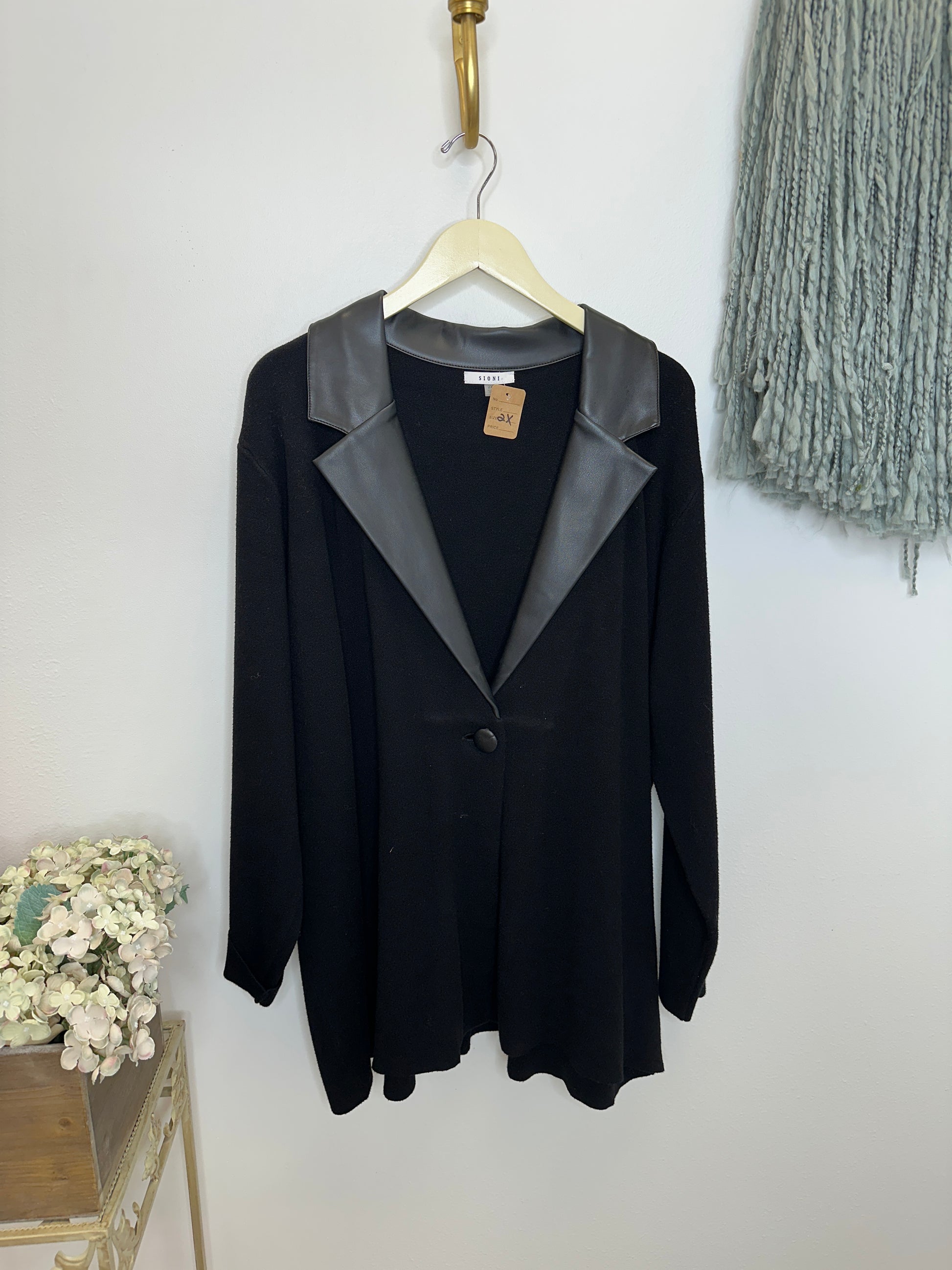Pre Owned Black Sioni Faux Leather Trim Jacket Size 2X
