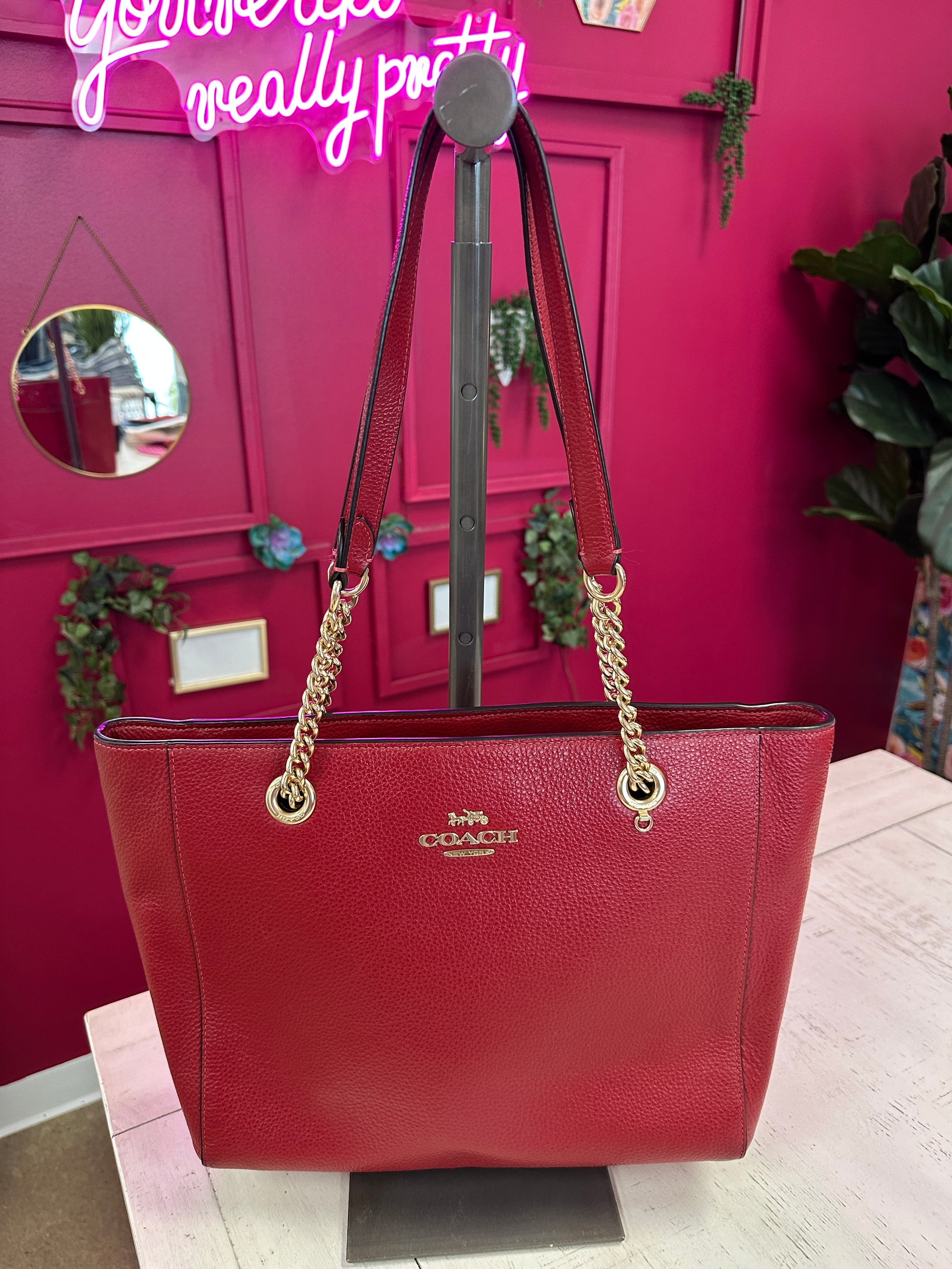 Pre Owned Coach Red Shoulder Bag
